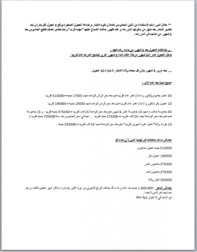 - Wants to invest in : اانتاج وتسويق ماشيه , مزرعة للألبان , تربية المواشي , مواشى